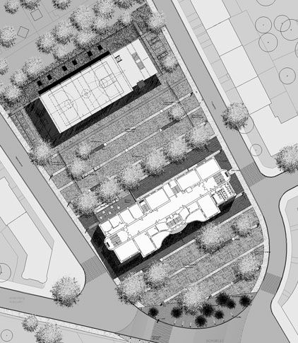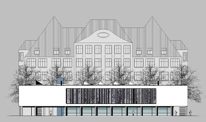 Dem riesig und düster wirkenden Altbau will der Entwurf des Anbaus etwas Lichtes, Helles,
