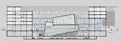 (Dimension Augustusplatz/Hochhausturm) als zurückspringende großzügig verglaste Foyerfläche
