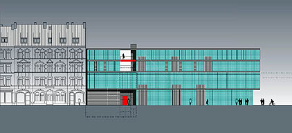 In the city center of Erfurt on a difficult triangular site we where chosen to design a commercial building