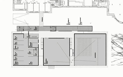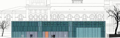 Probebühne/ Studiobühne) wird mit einer Stahl-Glas-Struktur umhüllt, die zum einen die