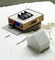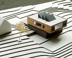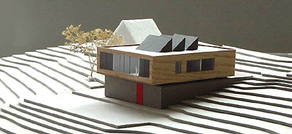 floor (fair-faced reinforced concrete) that stands in the slope. The ground floor spaces are