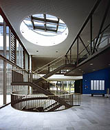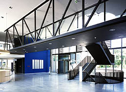 im Erdgeschoss und (über die zentrale Hallentreppe) auch im 1. Obergeschoss erreichbar sind. Im
