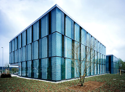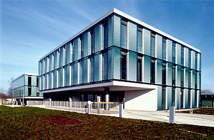 Bei dem Erweiterungsbau handelt es um zwei Pavillion-Gebäude, die auf einer gemeinsamen, beide