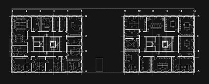 einem zentralen Kern mit Treppe, Aufzug und Nebenräumen erschlossen. Die beiden Kerne sind