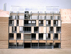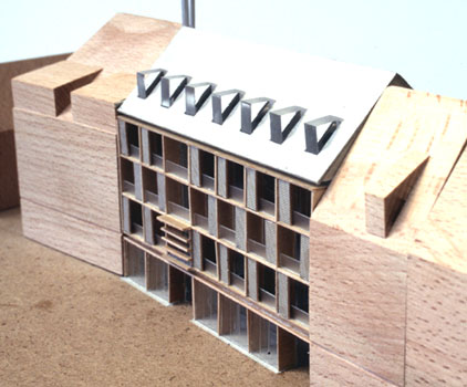 neighbouring buildings suggested a 4-story concept with a tilted roof. On the ground floor we